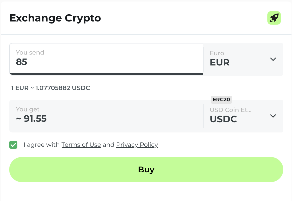 Je ziet direct hoeveel crypto je betaalt op basis van de actuele wisselkoers.
